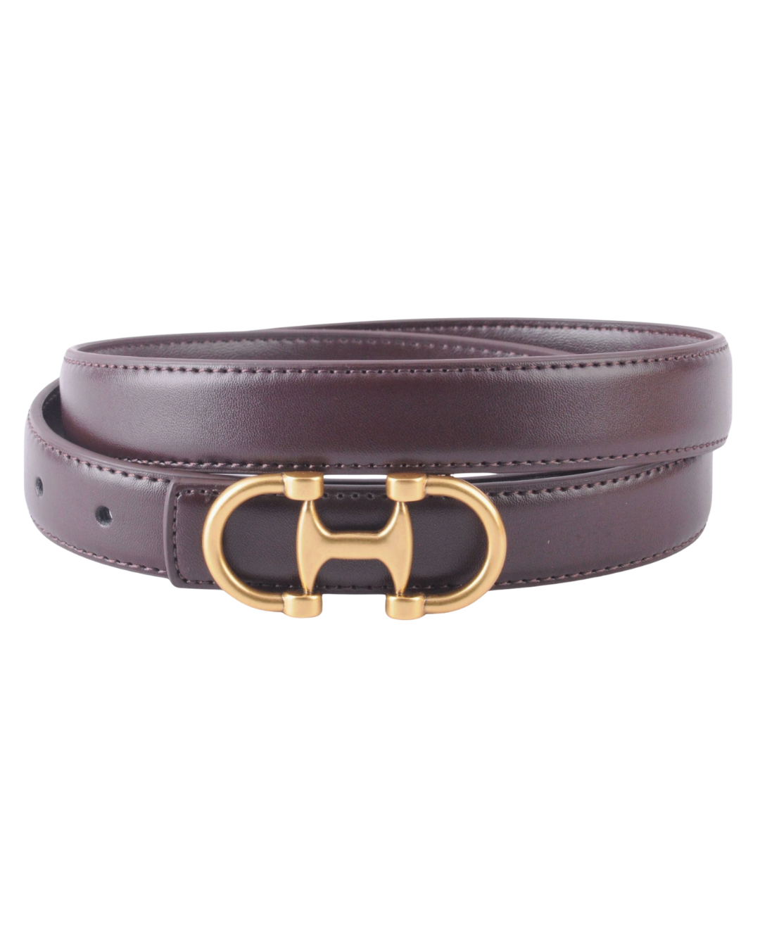 Brown Stitched Clean Leather Belt With Horsebit Buckle