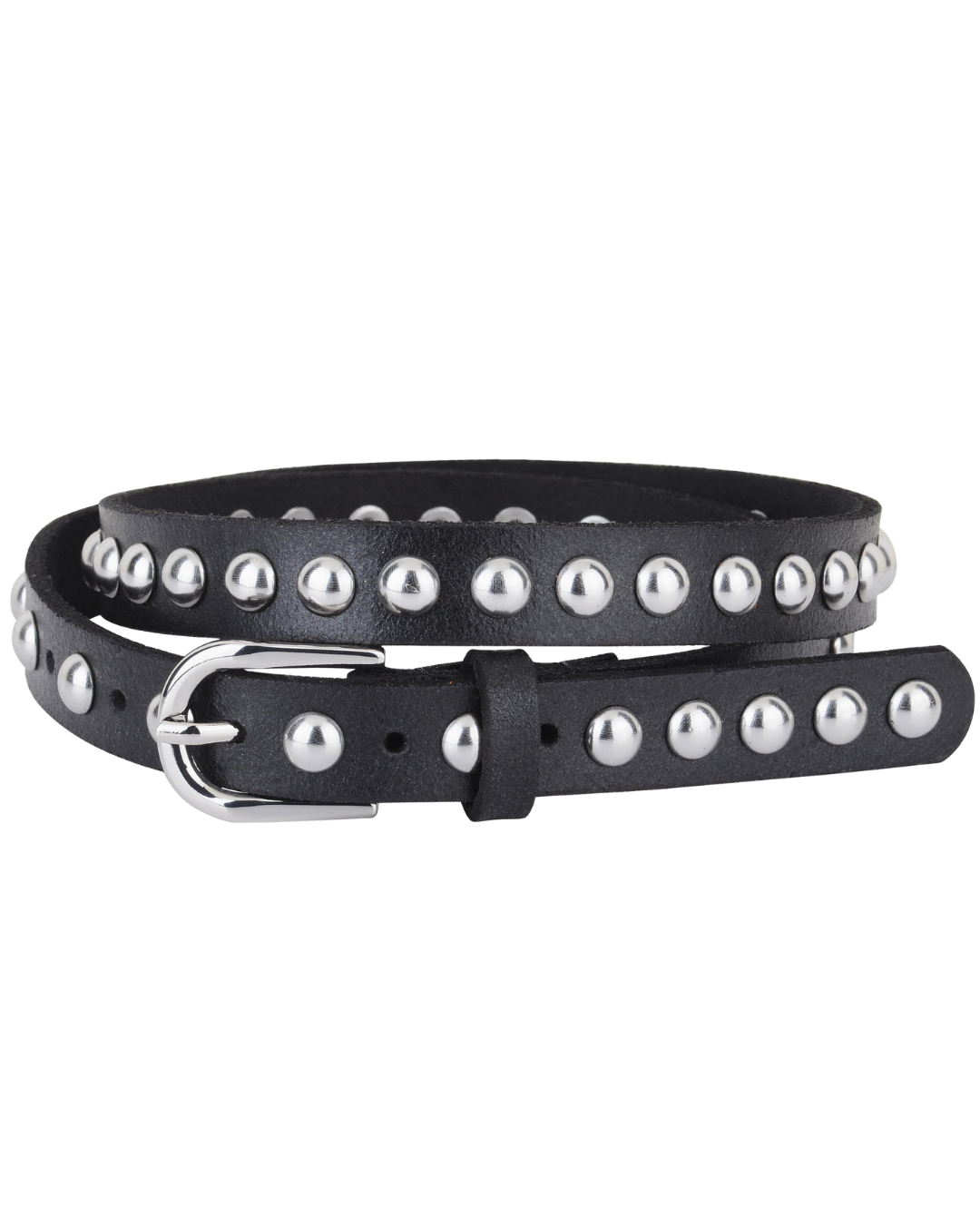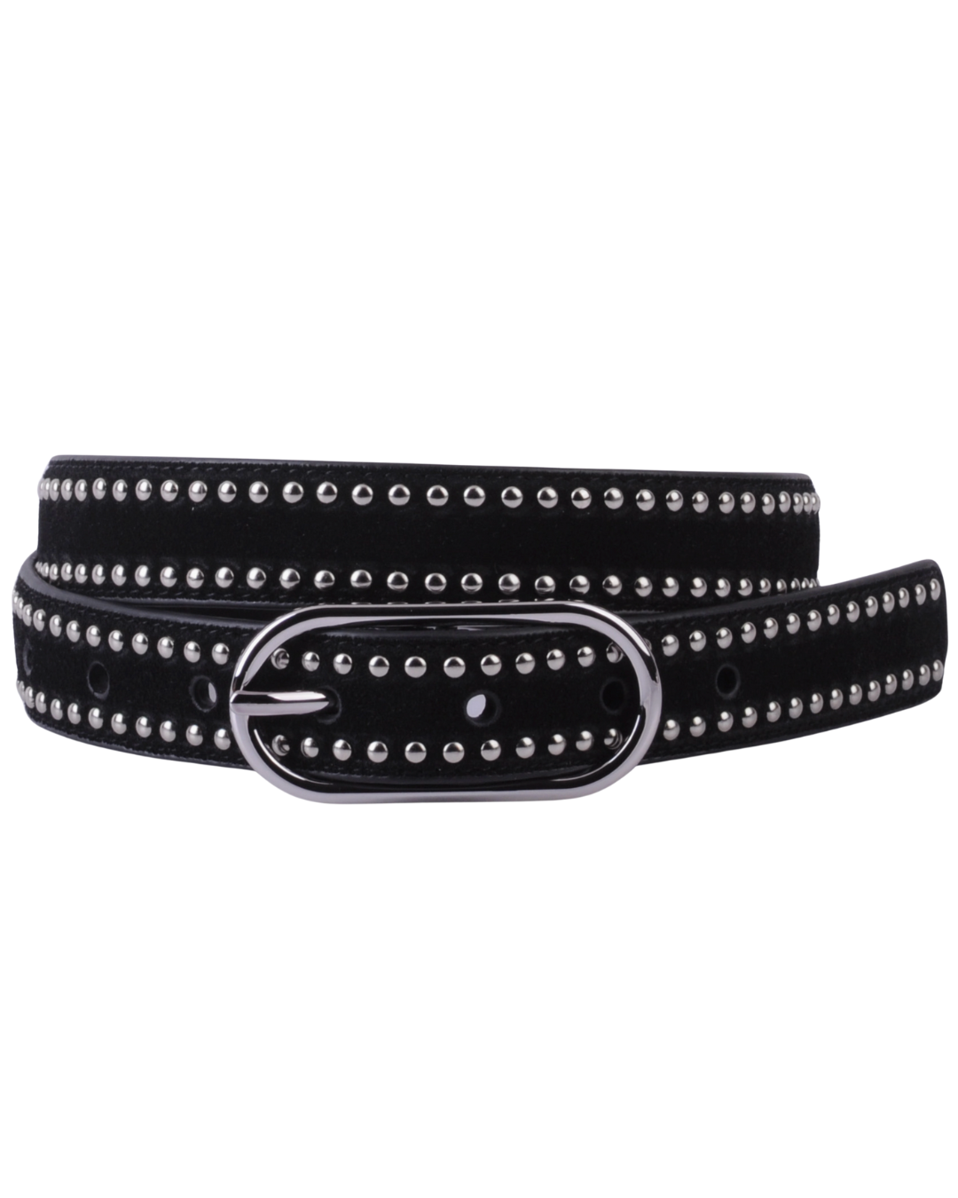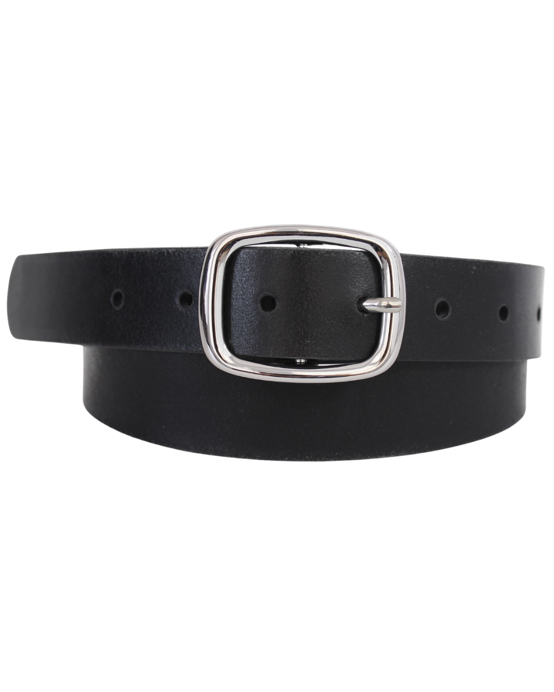 Black Stitched Clean Leather Belt With Horsebit Buckle