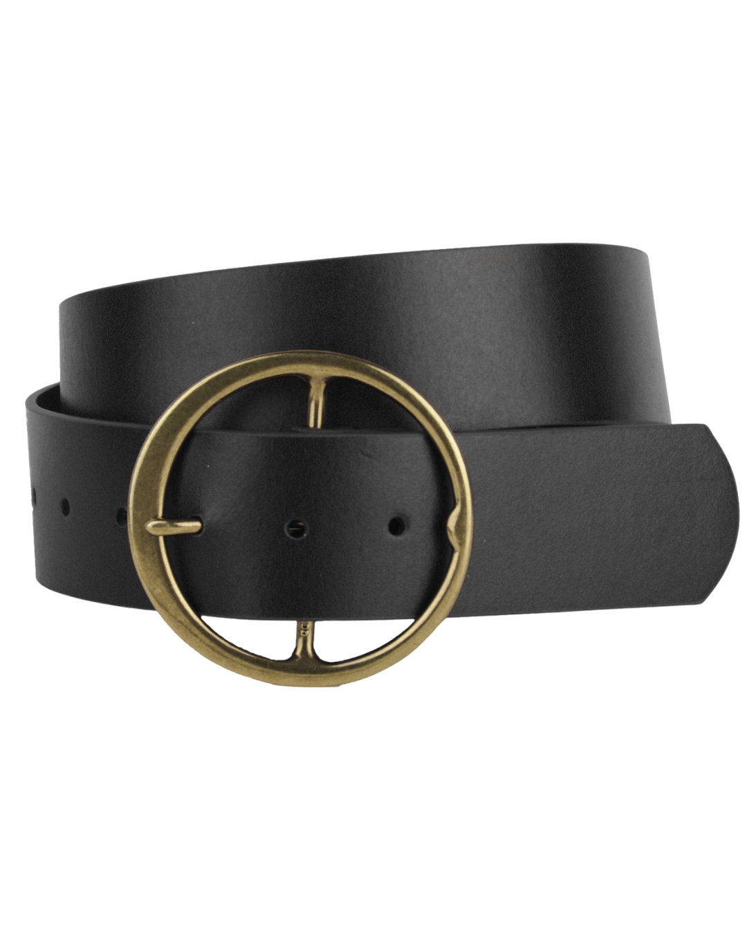 Black Ultra Wide Genuine Leather Circle Buckle Belt