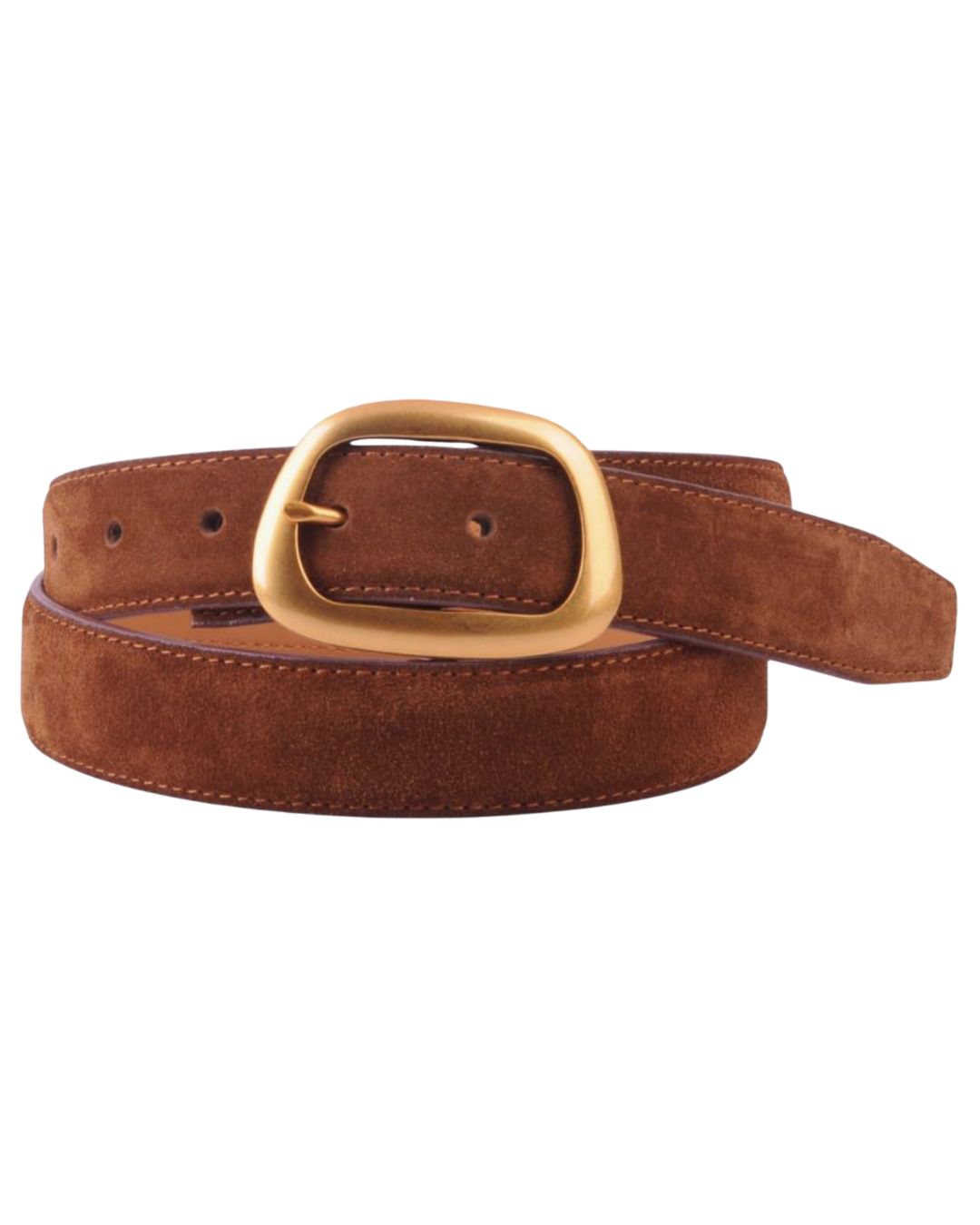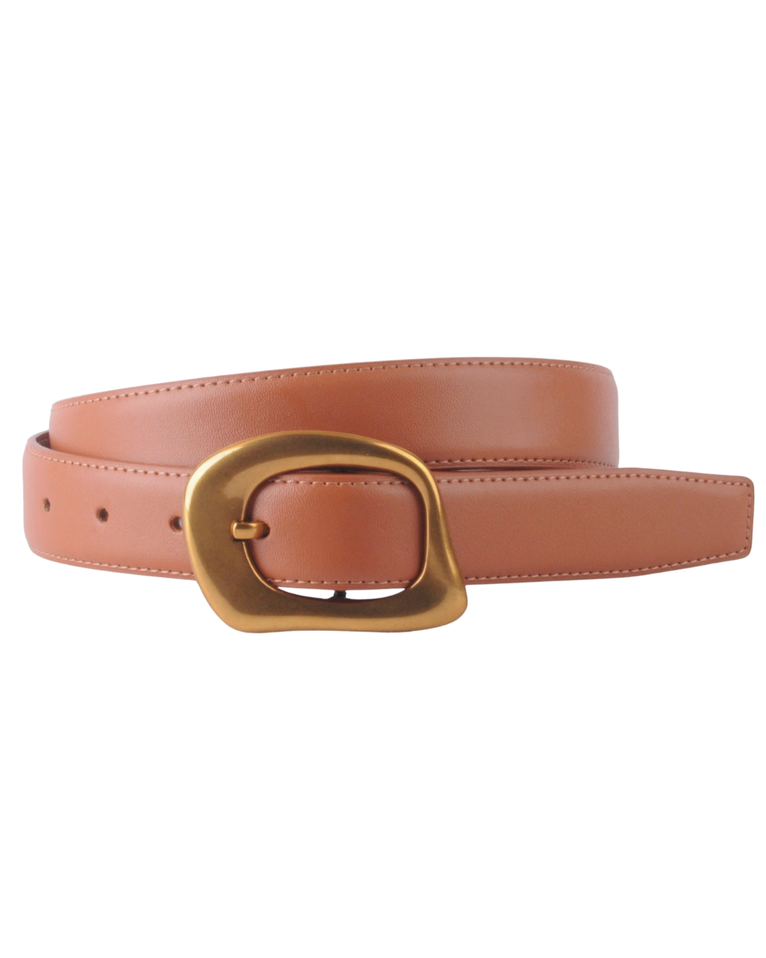 Caramel Suede Belt With Organic Shape Buckle Belt