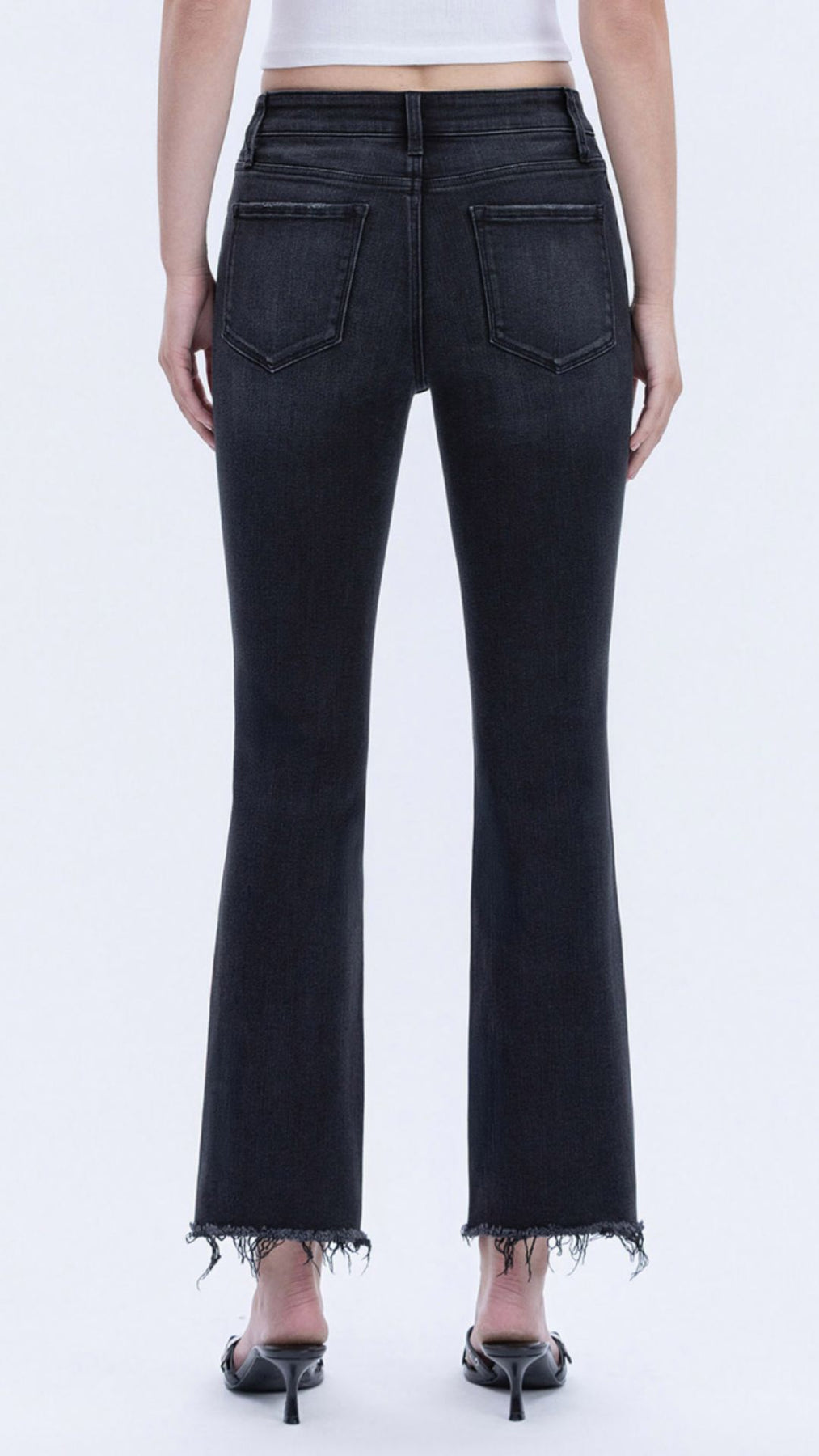 High Rise Black Seamless Waistband Kick Flare Jeans