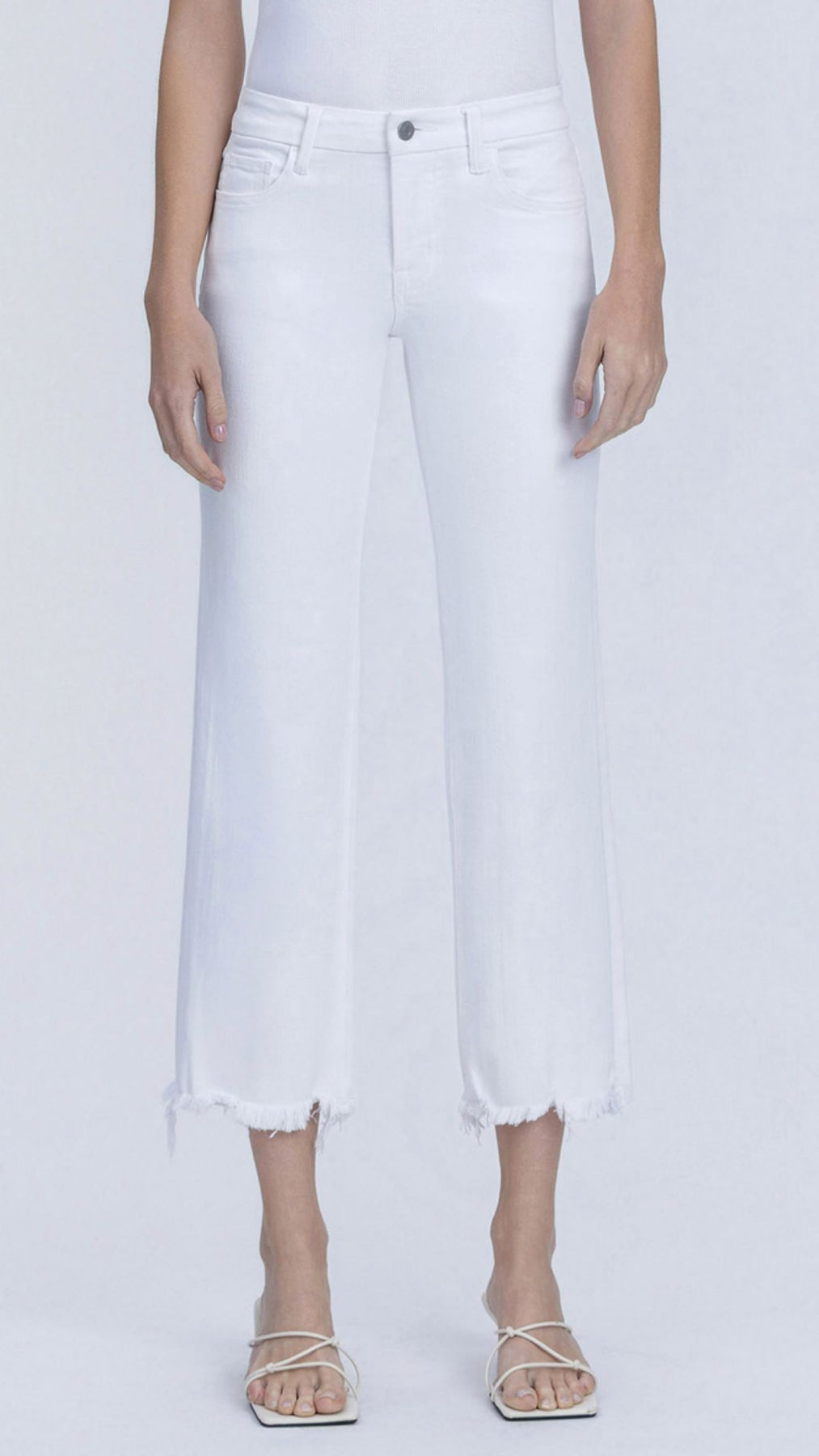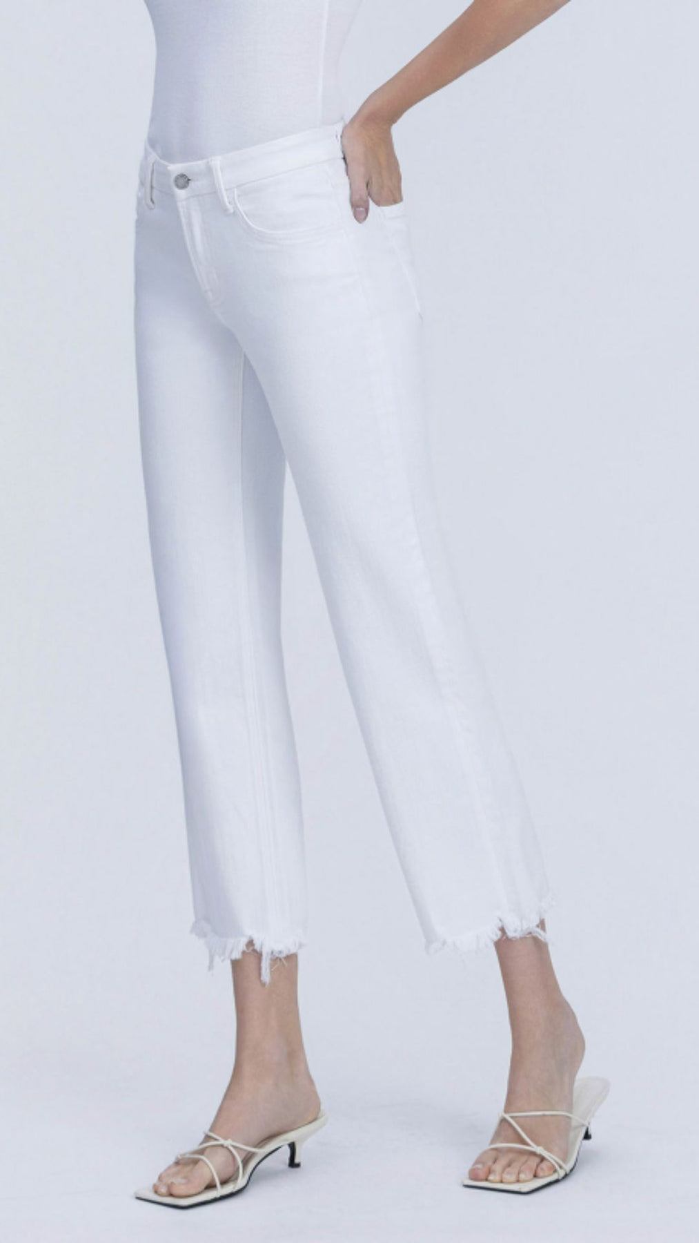 Mid Rise White Uneven Frayed Hem Cropped Straight Jeans