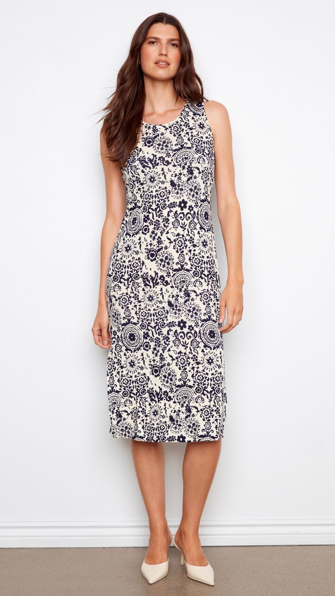 Black And Tan Printed Sleeveless Scoop Neck Midi Dress