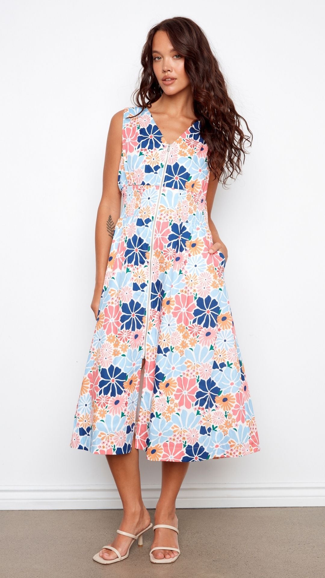 Fully Lined Crochet Sleeveless Buttoned Midi Dress