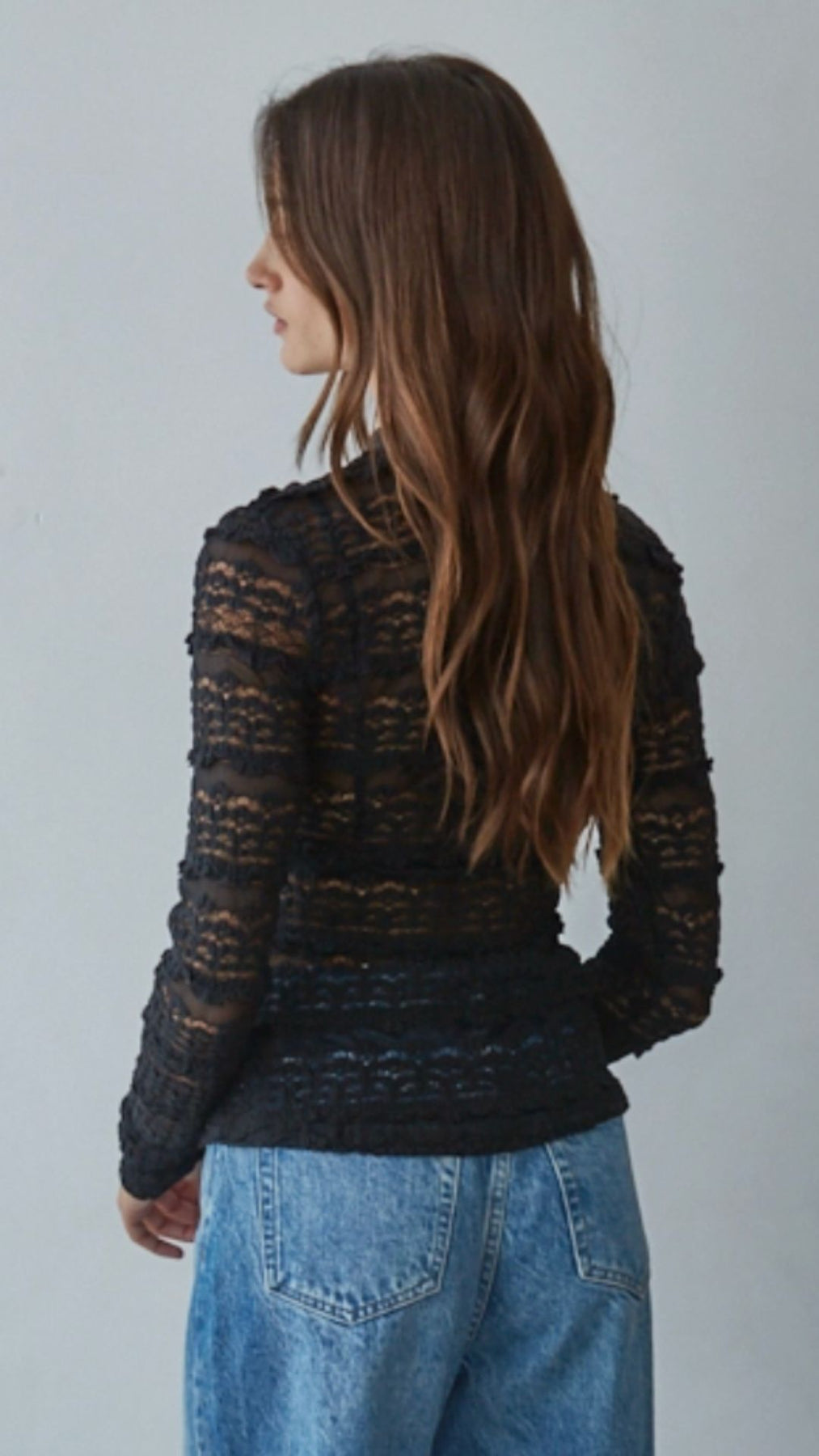 Black Woven Lace See Through Mock Top