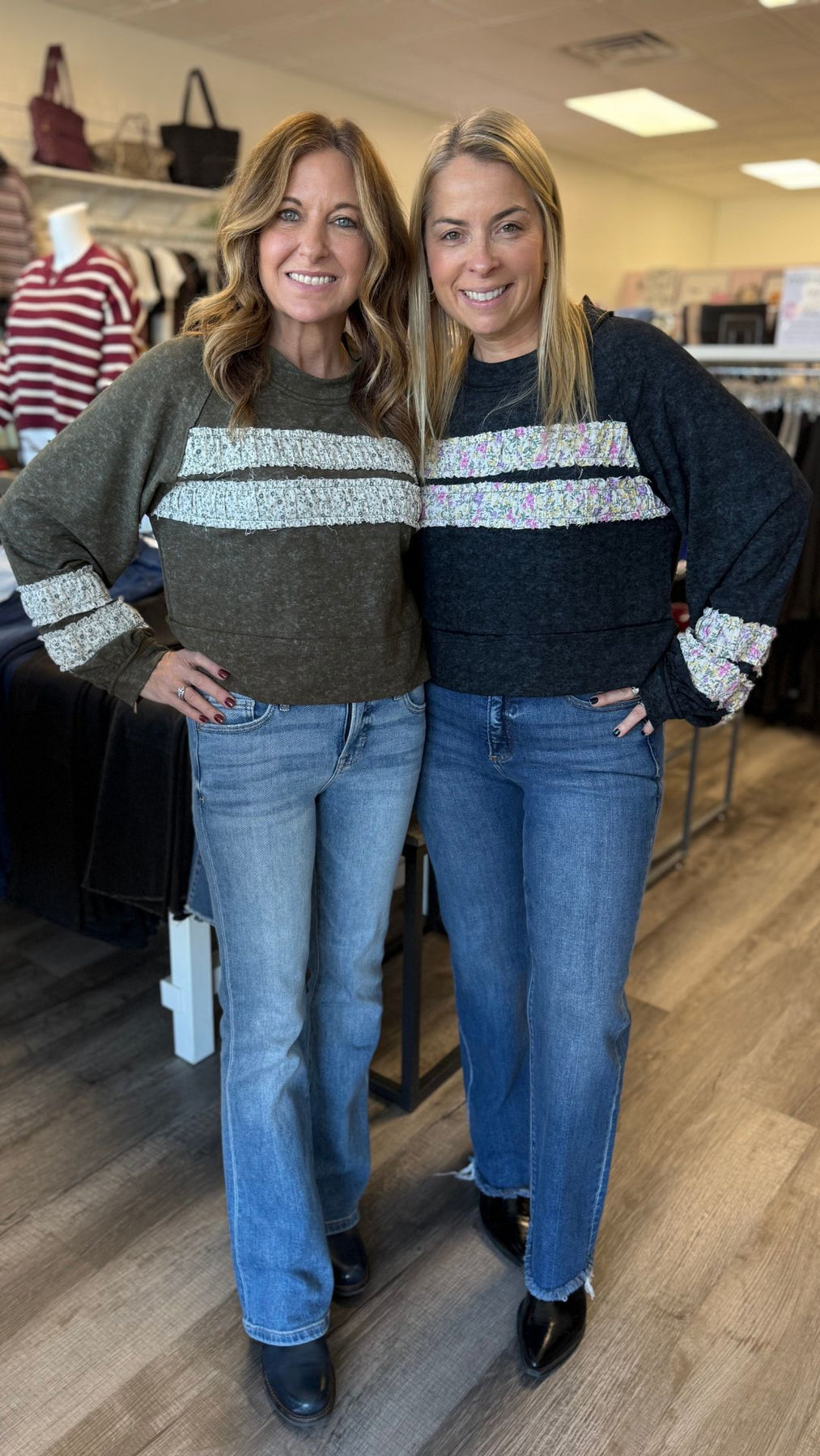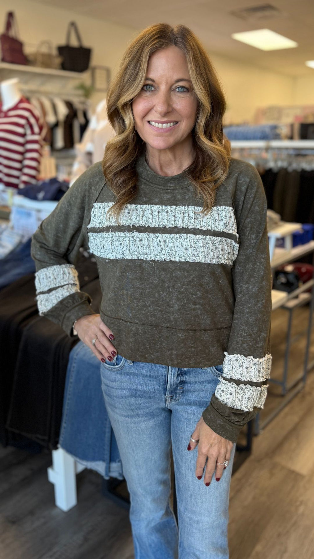 Olive Round Neck Balloon Sleeve Patch Pullover