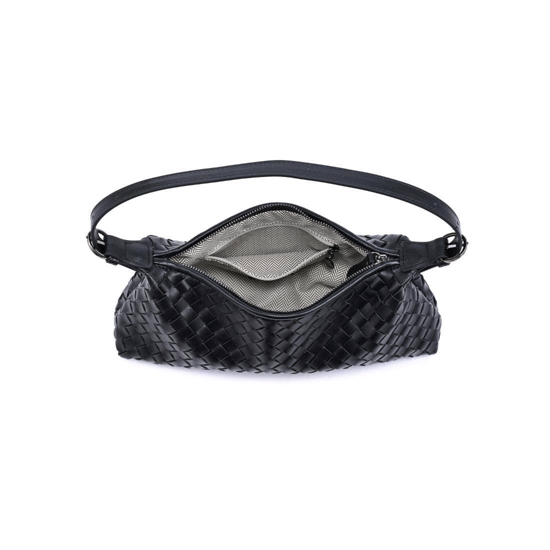 Woven baguette silhouette — Audrey Shoulder Bag Signature woven texture, secure zip closure and an adjustable shoulder strap with ring accents. Sleek, streamlined shape holds phone, wallet, keys and small essentials. Ideal for workdays and nights out, this modern handbag pairs with tailored and casual looks. Add the Audrey Shoulder Bag to your rotation for on-trend polish and everyday practicality.