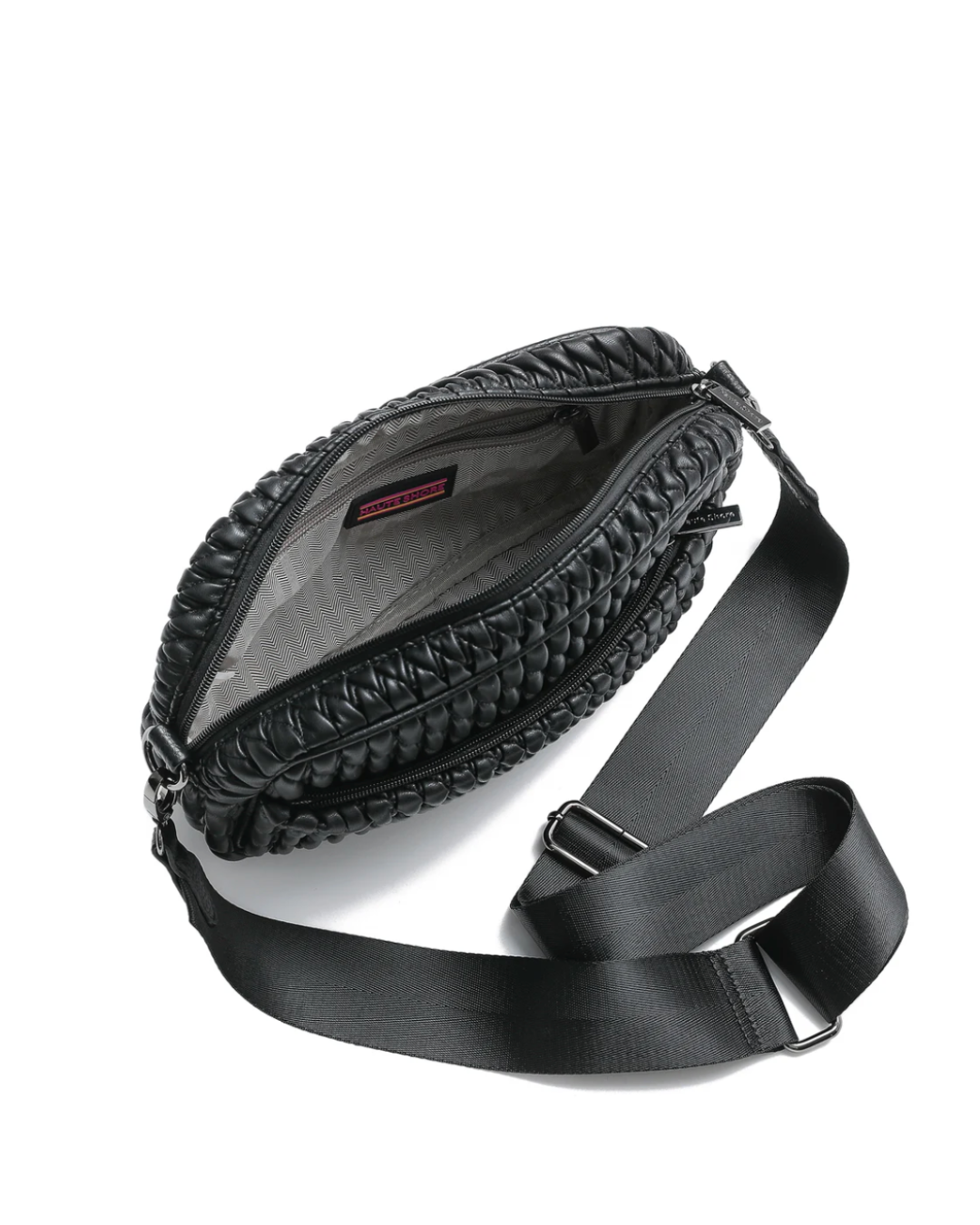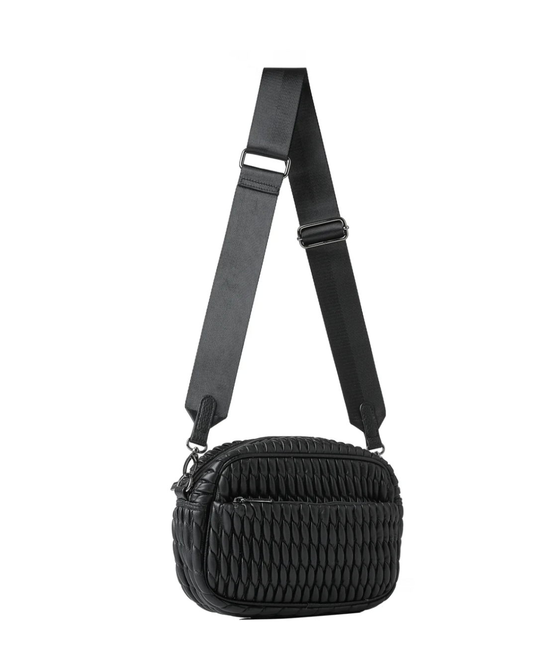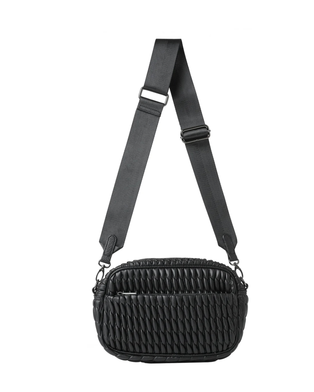 • Center main zip compartment with one exterior side snap pocket and one exterior side zip pocket