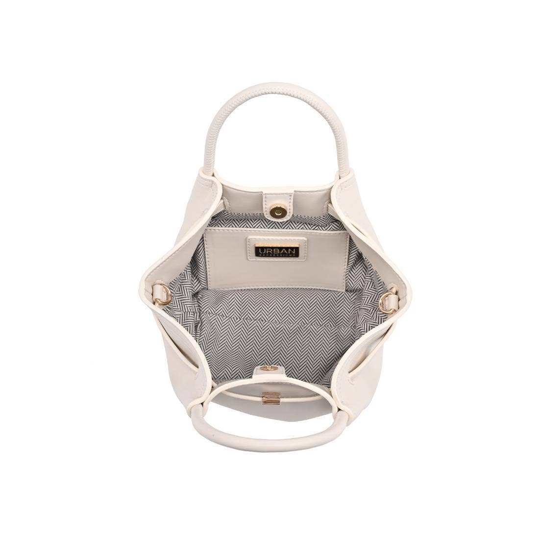 • Closure: gold-tone snap at the top center secures the main opening for quick one-handed access while keeping contents contained and easy to reach.
