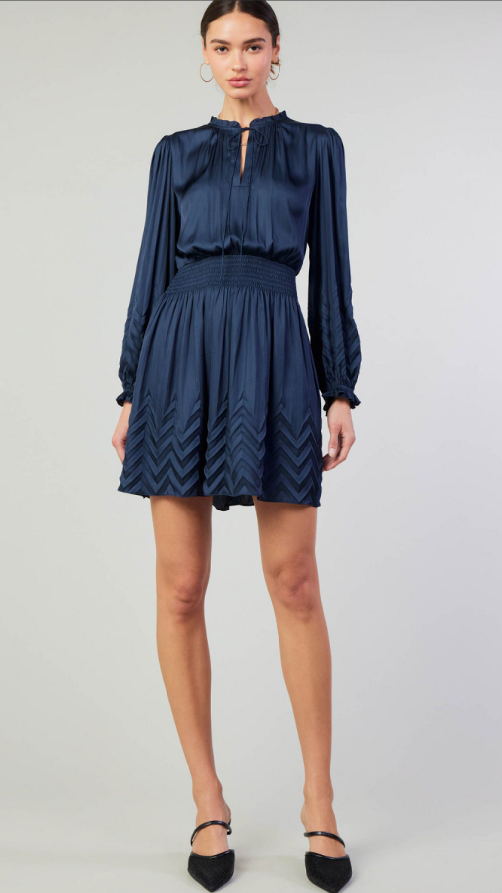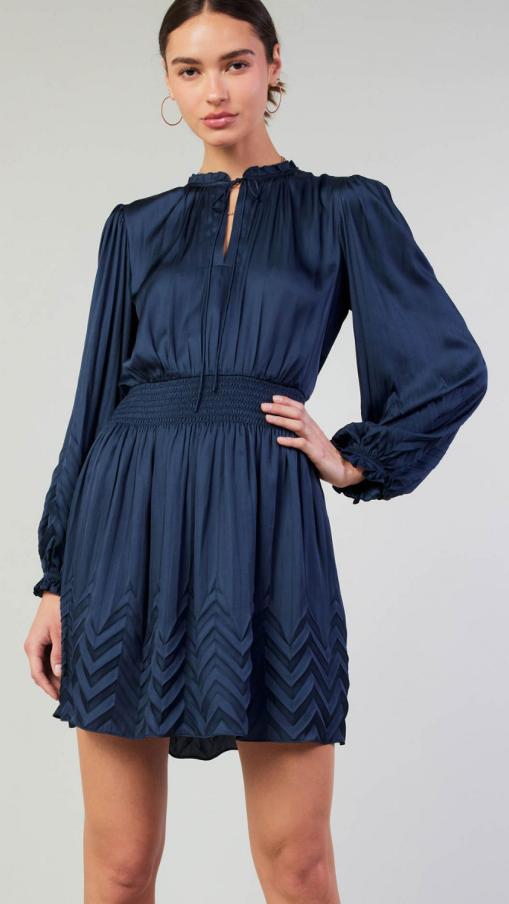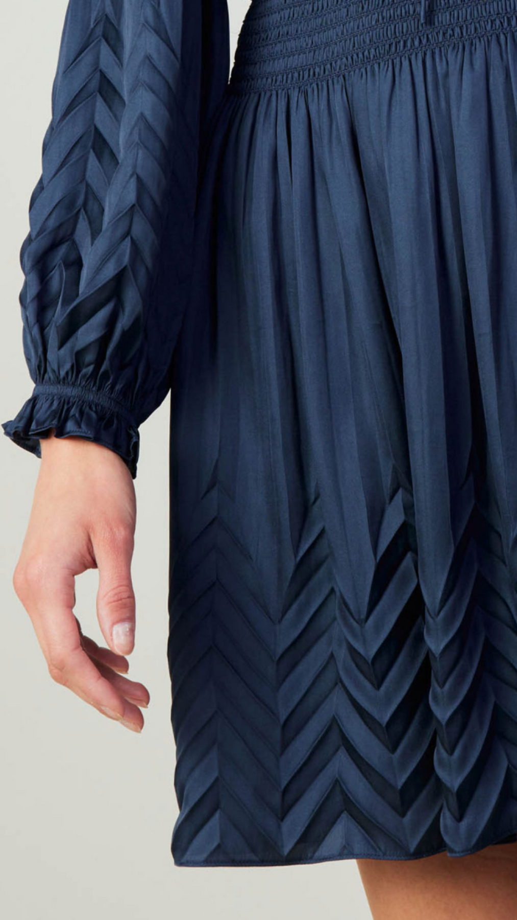 Navy Chevron Pleated Detail Dress