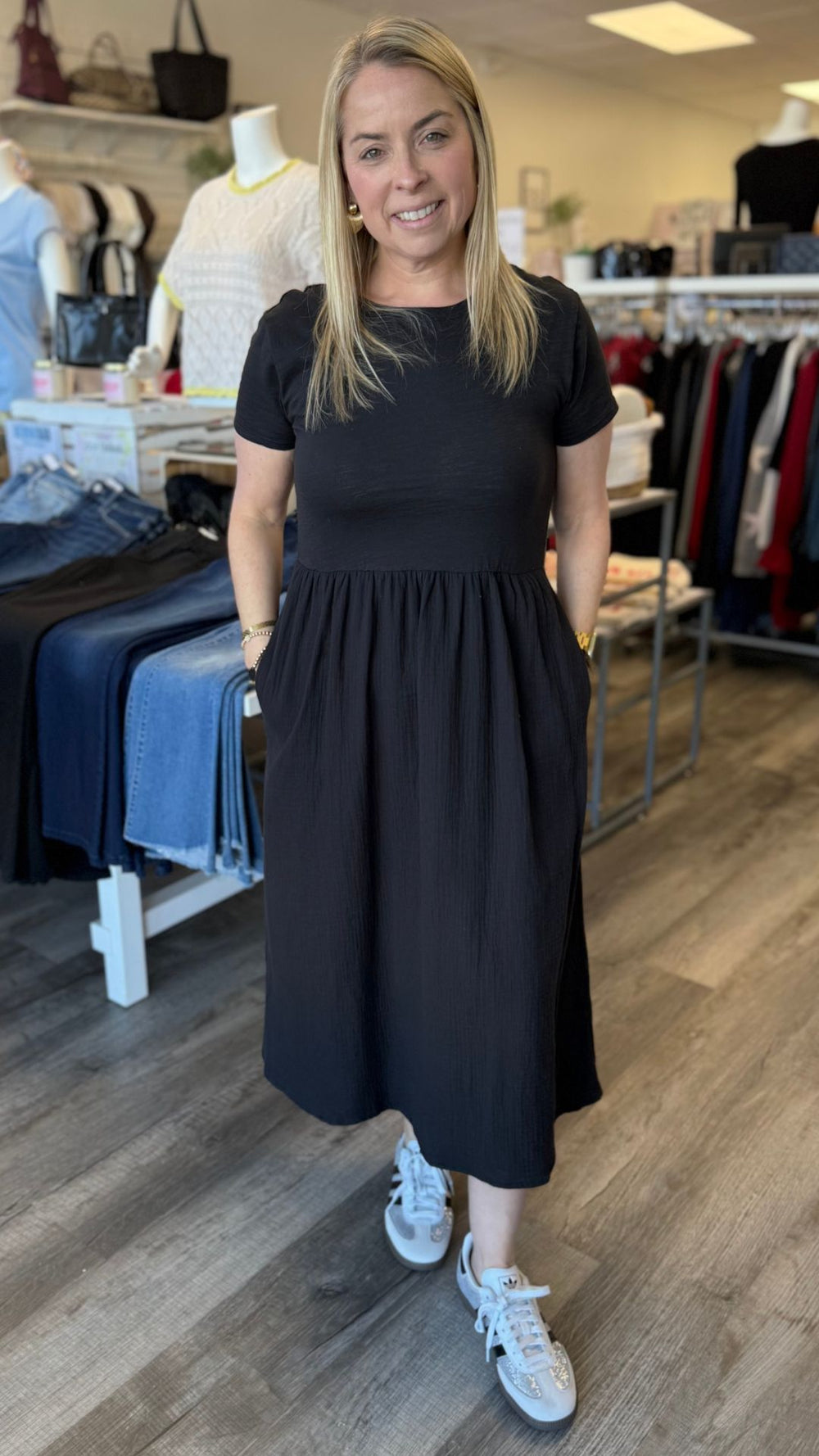 Short Sleeve Tee Gauze Bottom Midi Dress