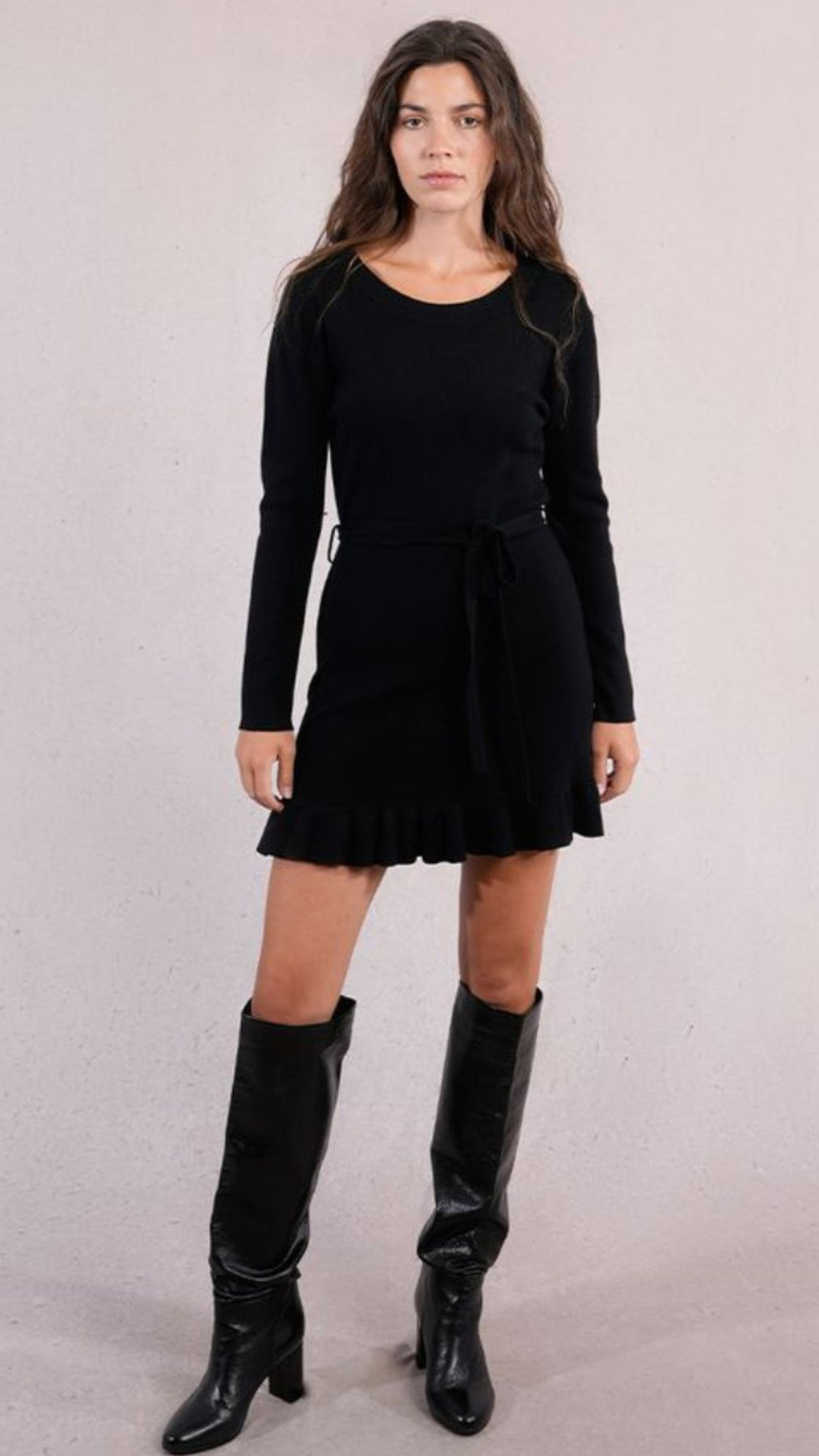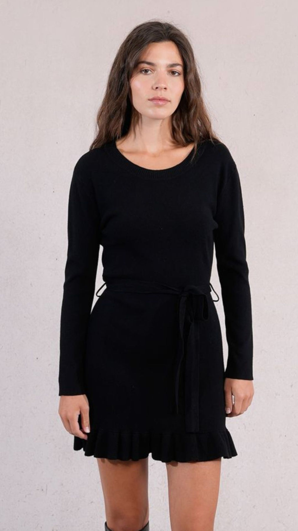 Black Knit Sweater Dress With Tie