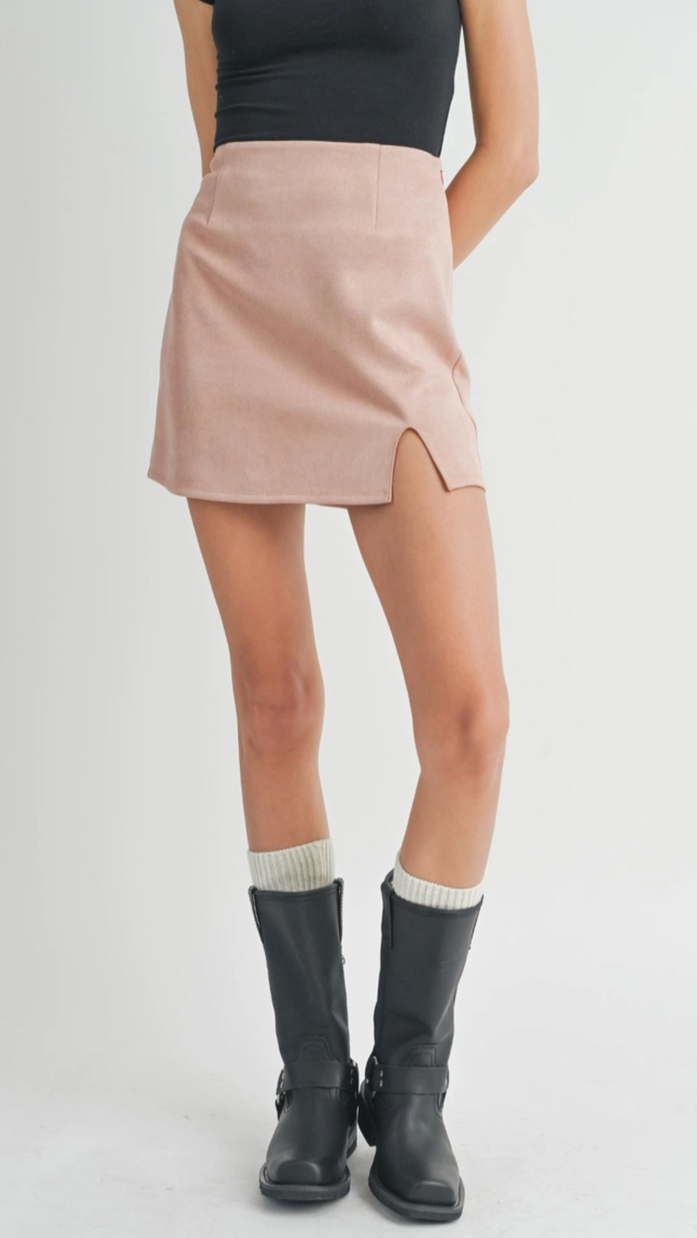 Rose Pink Suede Mini Skirt With Front Slit