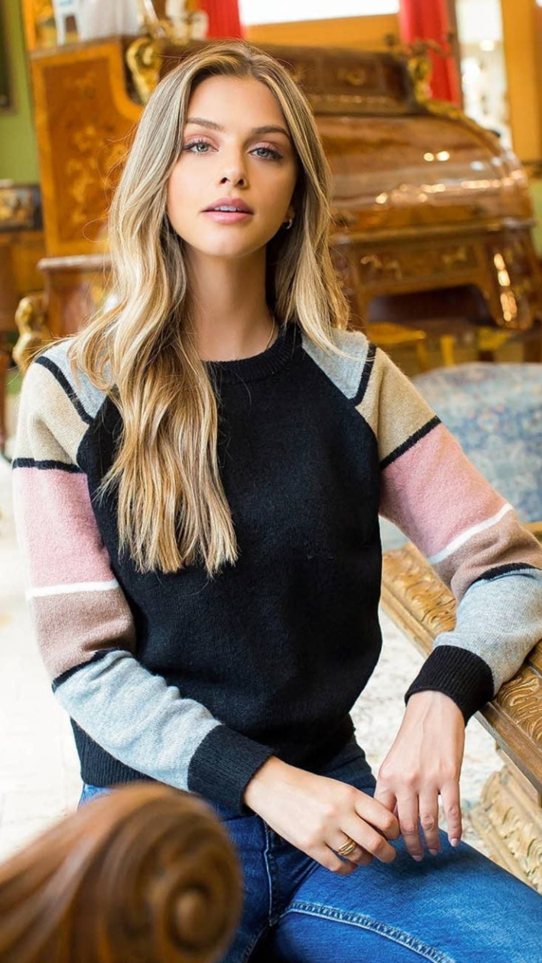Brown And Light Pink Taupe Oversized Buttoned Sweater
