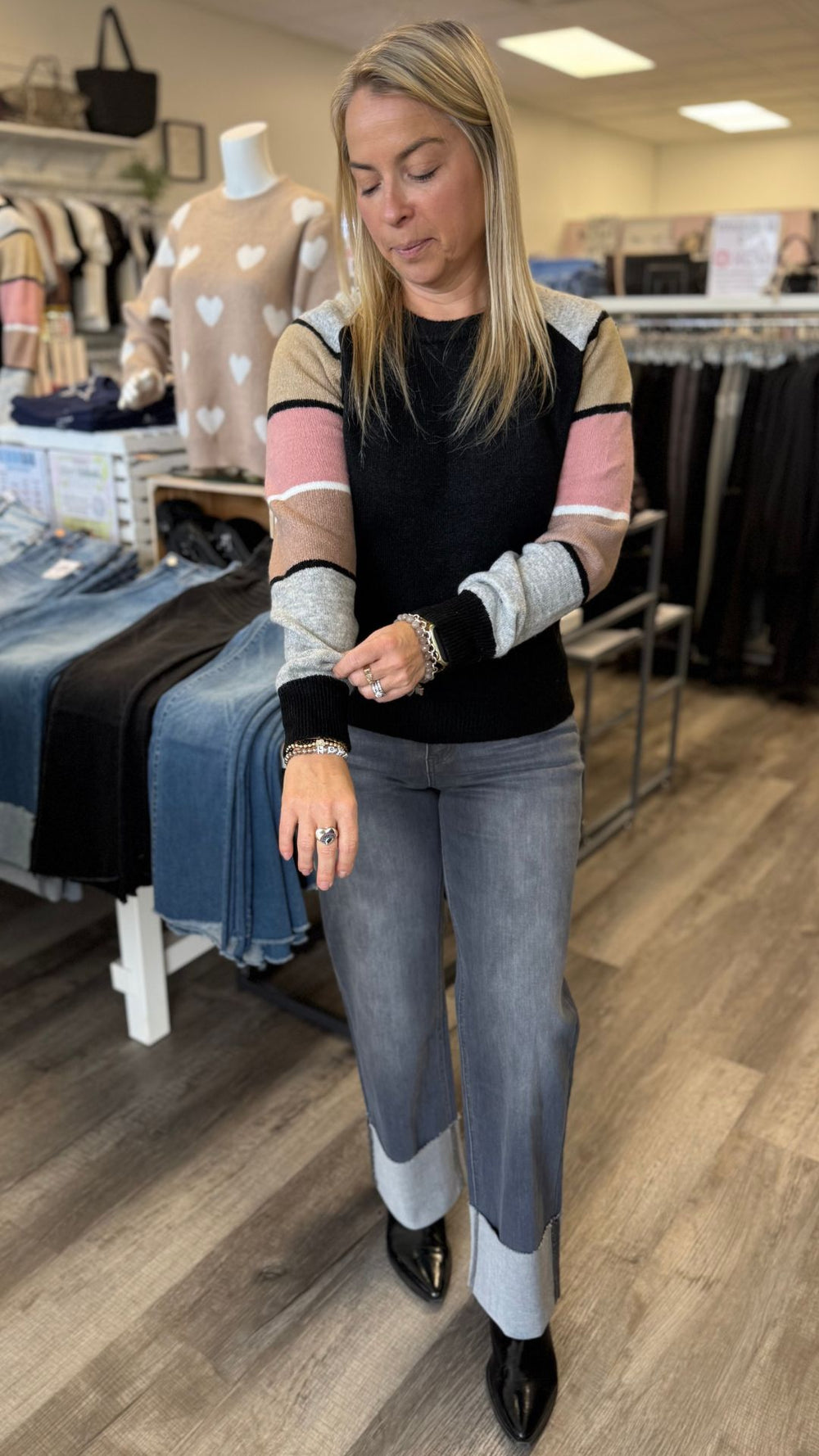 Burgundy Multi Stripe Crop Cardigan Sweater