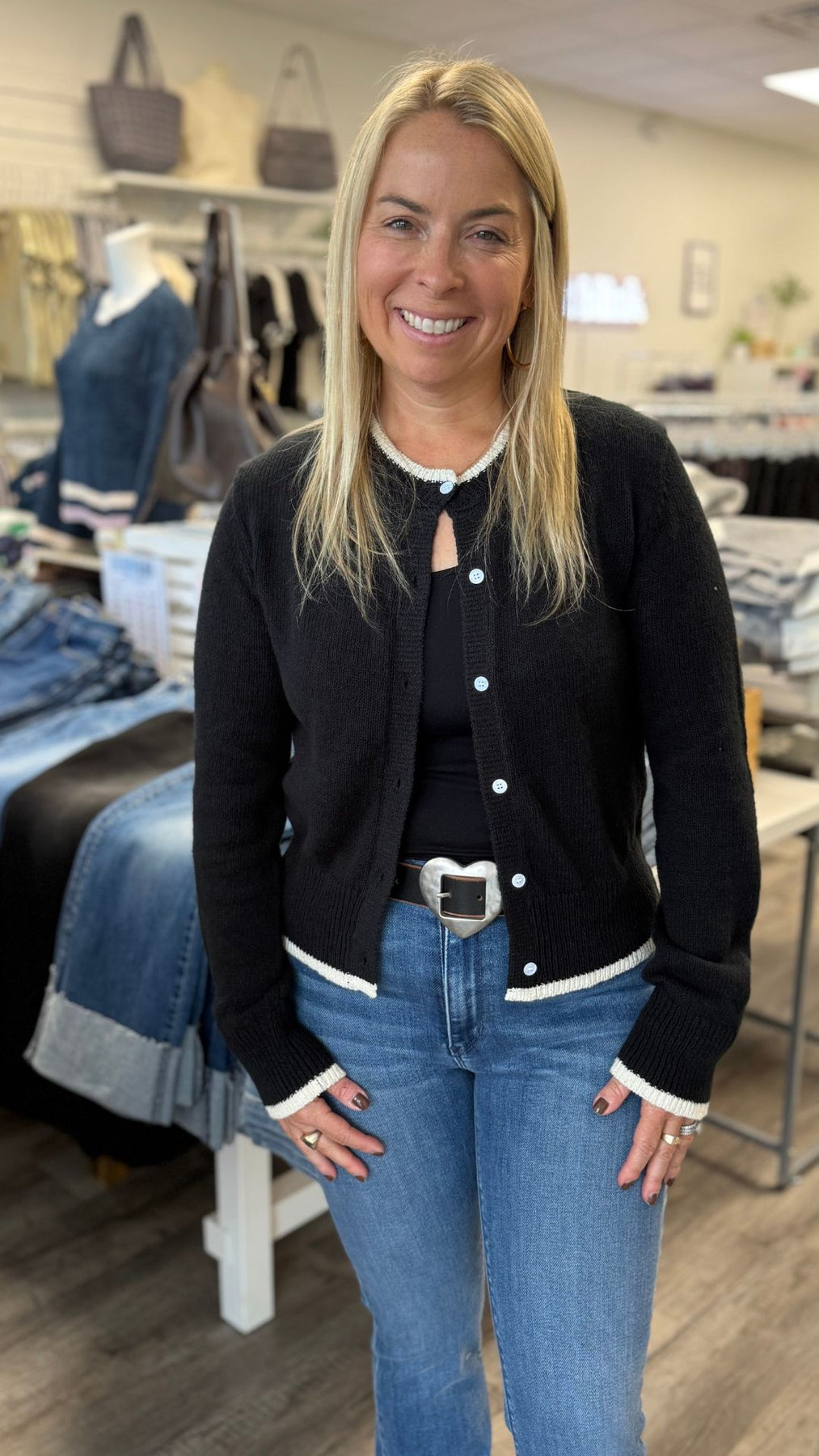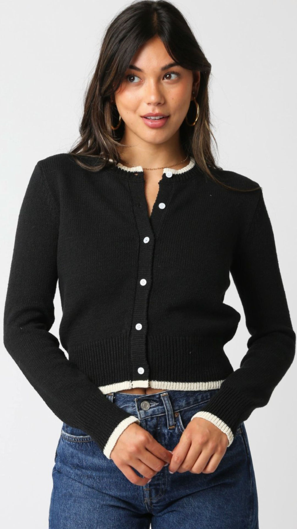 Black And Cream Sweater Cardigan