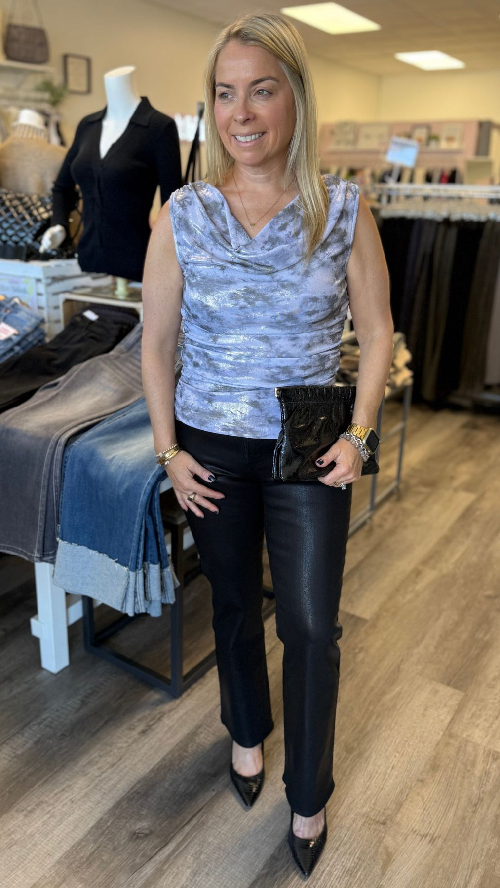 Grey Gold Cowl Neck Ruched Metallic Tank