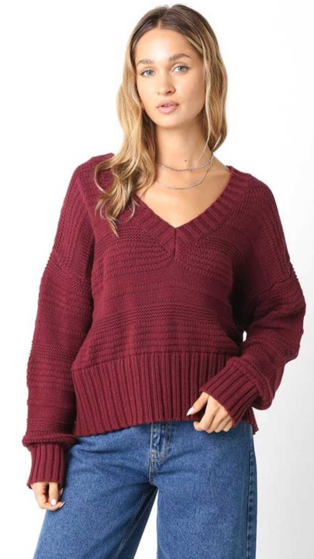 Burgundy Chunky V Neck Sweater